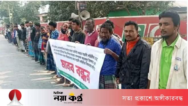দিনাজপুর সদর উপজেলা শেখপুরা ইউনিয়ন বিএনপির সাধারন সম্পাদকের বিরুদ্ধে মানববন্ধন