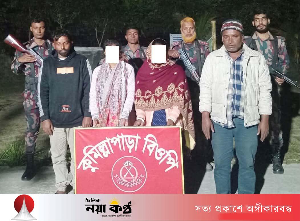 মহেশপুর সীমান্তে মানব চোরাচালানের সময় দু,নারীসহ ৪ জন বিজিবির হাতে আটক।