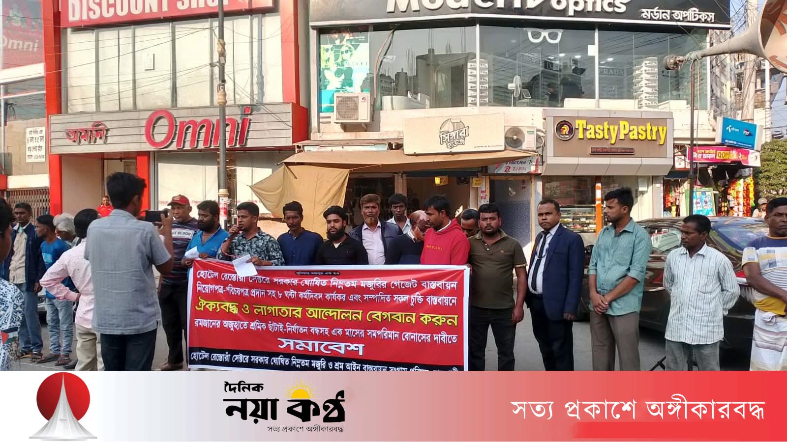 সরকার ঘোষিত নিম্নতম মজুরি প্রদান ও ৮ ঘণ্টা কর্মদিবস এবং রমজানে শ্রমিক ছাঁটাই বন্ধসহ এক মাসের মজুরির সমপরিমাণ উৎসব বোনাসের দাবিতে সমাবেশ অনুষ্ঠিত ।