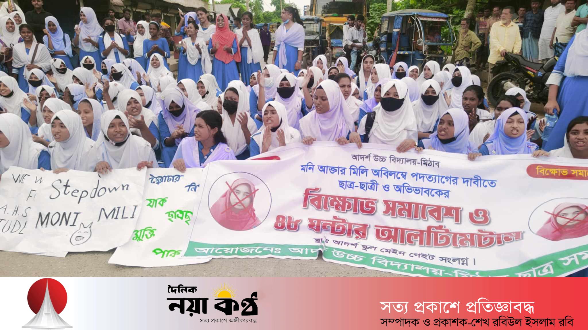 রূপগঞ্জে আদর্শ উচ্চ বিদ্যালয়ের প্রধান শিক্ষকের পদত্যাগের দাবিতে বিক্ষোভ