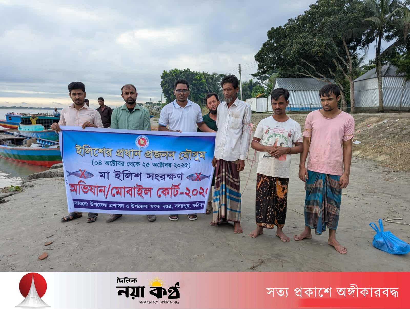 সদরপুর থেকে শিমুল তালুকদারঃ ফরিদপুরের সদরপুর উপজেলায় মৎস্য রক্ষা ও সংরক্ষণ অভিযান চালিয়ে অবৈধভাবে মাছ ধরার অপরাধে ৩ জন জেলেকে অর্থদণ্ড ও কারাদণ্ড দিয়েছেন ভ্রাম্যমাণ আদালত। সেই সঙ্গে জব্দকৃত