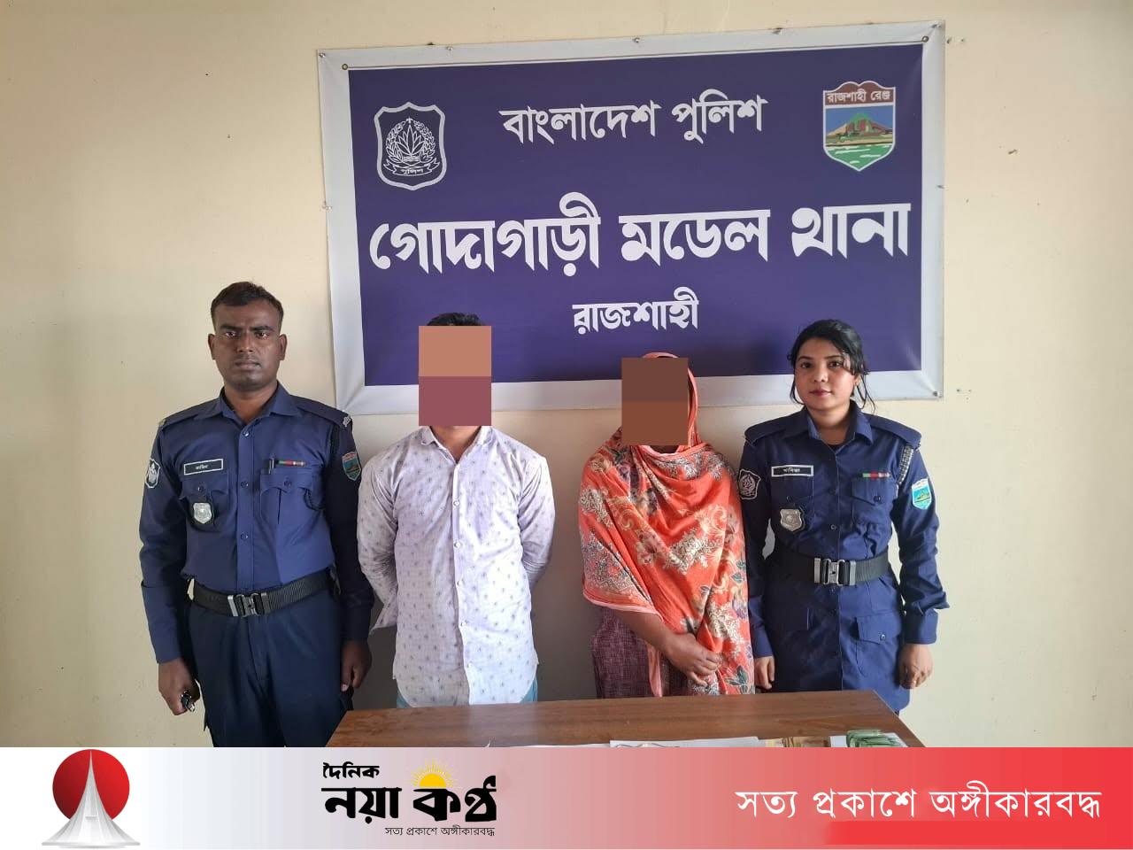 রাজশাহী ব্যুরোঃ আজ ১৫ মার্চ ২০২৬ খ্রি. রাজশাহী জেলার গোদাগাড়ী থানাধীন কালিয়াঘাটা দাসপাড়া গ্রাম হতে রাত ০১:৪০ টায় দুইজন চোরকে চুরি হওয়া স্বর্ণালংকার ও ১৪,০০০/-(চৌদ্দ হাজার) টাকাসহ গ্রেফতার